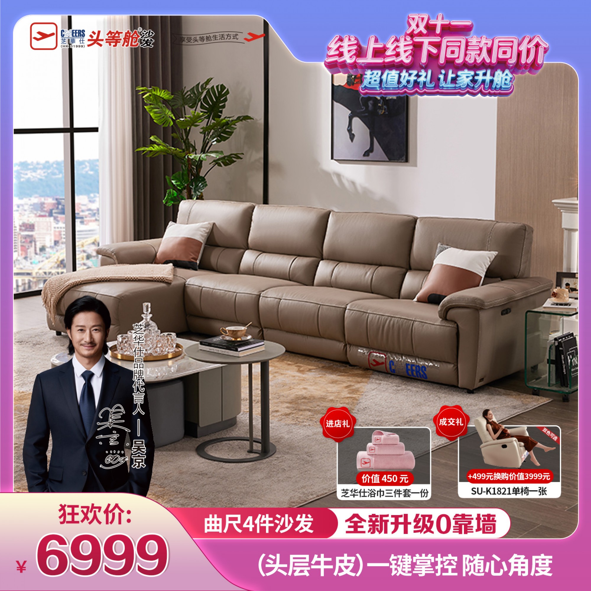 芝华仕头等舱贵族云漫真皮组合电动功能沙发(零靠墙)SU-11675M 30-60天发货