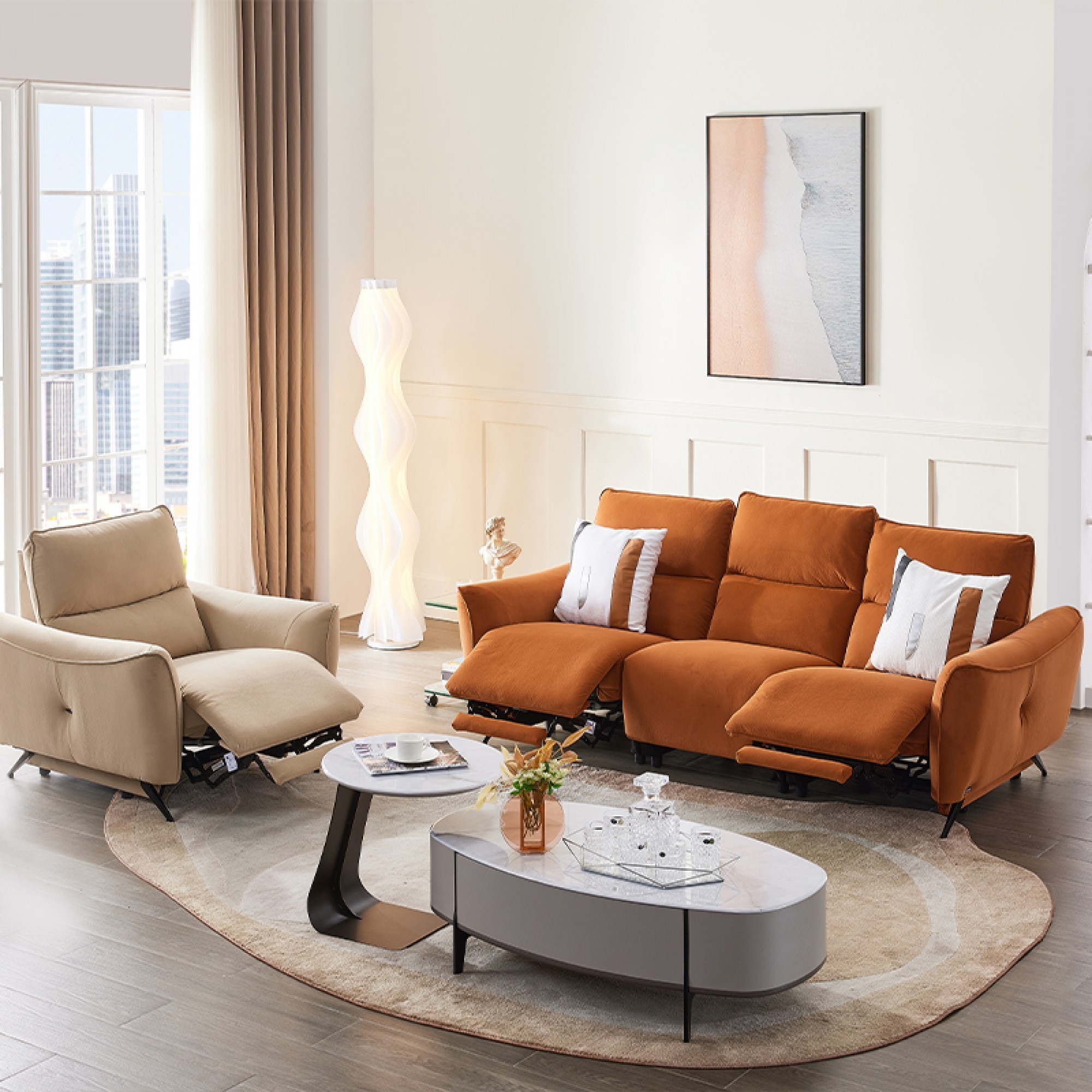 芝华仕头等舱美居简境虫虫懒人布艺电动功能沙发FU-12276M 30-60天发货